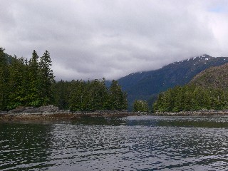 Sunday, July 2, 2006 - We lifted anchor at 9:35am and headed south down Blake Channel to Anan Bay, to see the bears. Anan Wildlife Observatory had been on our list of "must see" on this trip. The forest service had built an observatory which overlooks the waterfalls of Anan Creek and a blind where the bears can be observed up close and personal. On our way up north, it was way to early to see any bear activity so we decided that would make our stop on our way south. Art (Lucky Puppy) said he had been there two days before and was able to anchor as the forest service let him stern tie to their float. He said that even though the fish were late in running there were a few bears to be seen. As we entered the bay and dropped our anchor to find that for a boat our size we were forced over a sandy shoal with a steep drop off. No sooner had we dropped the dingy to go ashore, the winds shifted from the west and were picking up to 20 knots. The boat was rocking and the anchor was dragging and it was not a safe situation to leave the boat unattended. It is somewhat interesting that they have this wonderful observatory that is difficult to access except by seaplane that can be beached. There is no "dingy dock" so even if you were able to anchor, you needed to be able to drag your dingy to shore and secure it against the changing tides while hiking to the observatory. We lifted our anchor and headed south down the Seward Passage to Santa Ana Inlet to spend the night.